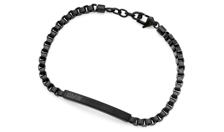 Спортивный браслет из нержавеющей стали. Надпись BMW на металлической пластине. Дизайн: Венецианская цепь.
