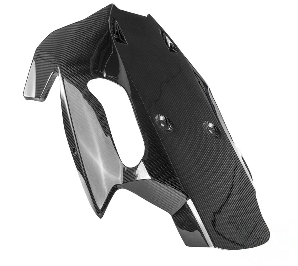 Карбоновый плуг придает мотоциклу эффектный спортивный вид и подчеркивает агрессивный дизайн передней части. Помимо улучшения внешнего вида, он также защищает нижние компоненты двигателя от летящих камней и грязи.