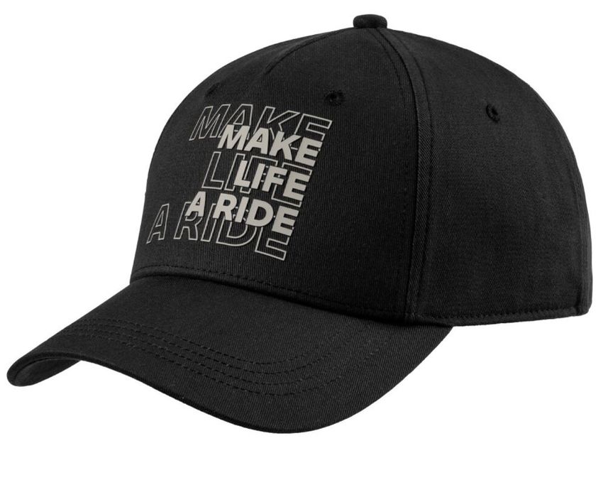 Пятипанельная кепка BMW Make Life a Ride с застежкой-кнопкой и напечатанной надписью.