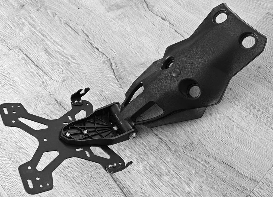 Короткий алюминиевый держатель номерного знака для Ducati Multistrada V4 (2021-2024) от Evotech Italy.
