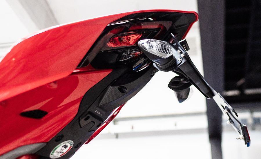 Короткий алюминиевый держатель номерного знака для Ducati Panigale V4 (2024-) и Streetfighter V4 от Evotech Italy.