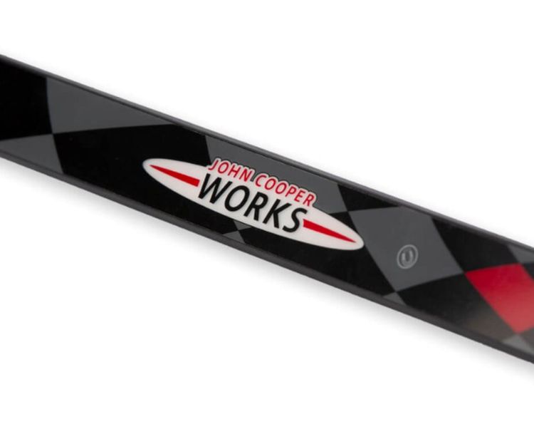 Светодиодные молдинги порогов в дизайне JCW включают в себя эмблему "JCW" с подсветкой, которая автоматически приветствует вас своим светом при открытии дверей.