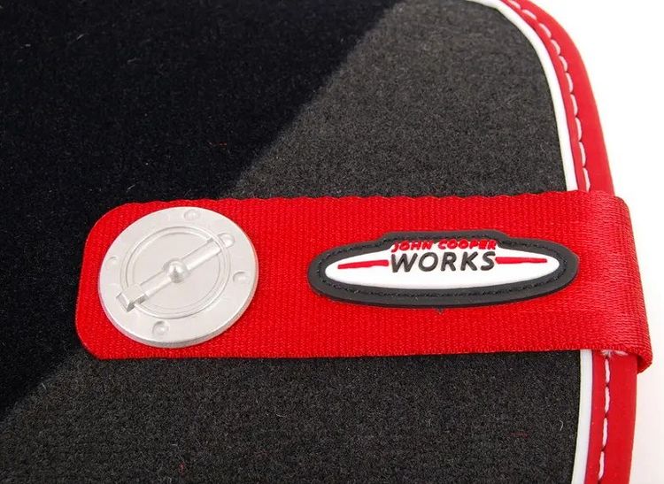 Текстильные задние ножные коврики в дизайне John Cooper Works Pro для MINI F56. Коврики изготовлены из специальной комбинации пластика TPE (термопластичного эластомера) и ворса и, таким образом, надёжно защищают пространство для ног от грязи и влаги.