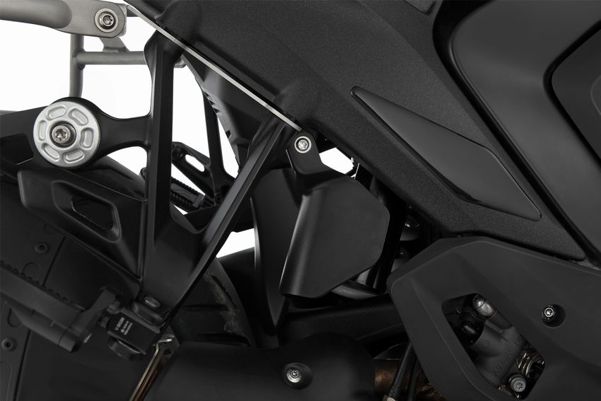 Внутреннее крыло Wunderlich для BMW R1300GS Adventure (KA2) — незаметная и эффективная защита заднего амортизатора, водителя и пассажира от грязи и брызг из под заднего колеса.