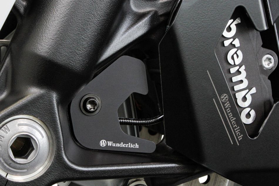 Датчик ABS переднего колеса расположен в очень открытом и незащищенном месте между радиальным тормозным суппортом и передней осью. Это важнейший компонент безопасности, который всегда должен работать исправно и должен быть защищен от механических повреждений, вызванных камнями или другими посторонними предметами. Защитный кожух датчика ABS от компании Wunderlich, плотно прилегает к корпусу радиального тормозного суппорта BMW F900R (2020-2025→) / F900XR (2020-2025→), надежно закрывает датчик ABS и тем самым защищает его от повреждений.