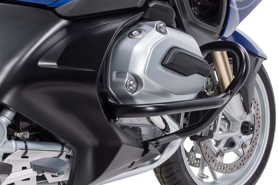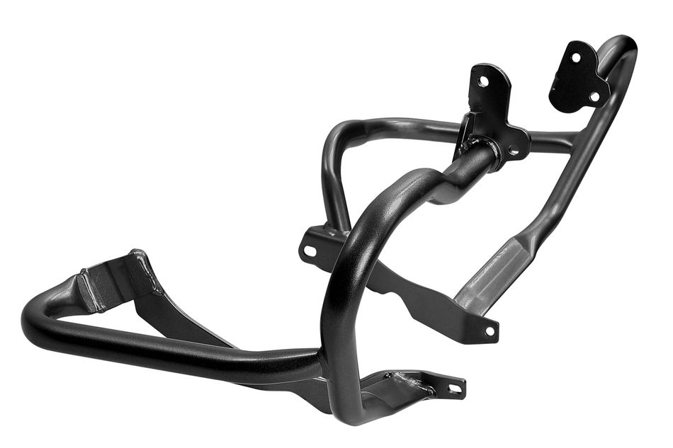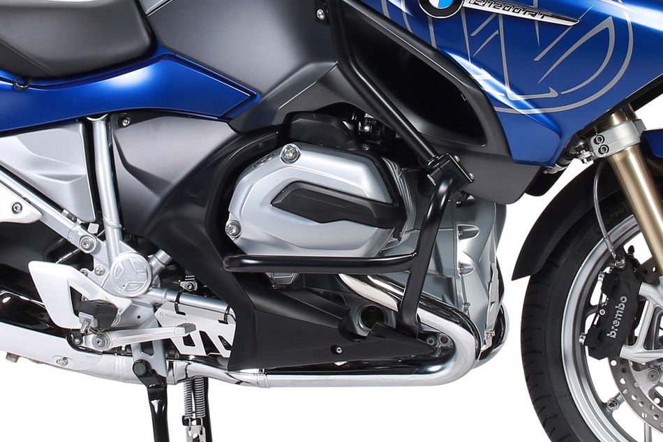Защитные дуги двигателя для BMW R1250RT (2014→), которые обеспечивают превосходную защиту крышек клапанов (даже при сильных ударах) и заканчиваются элементом защиты днища, который также служит прочным основанием для дуги.