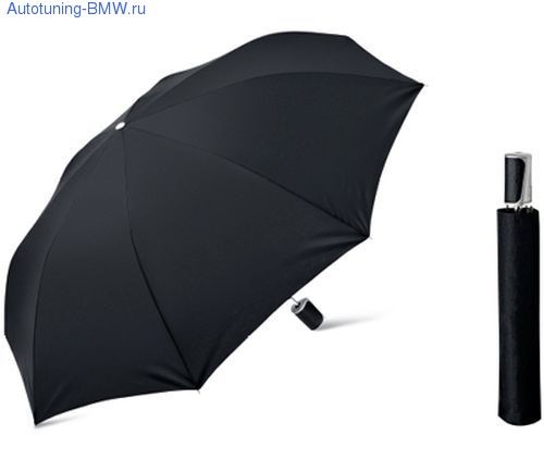 Элегантный складной зонт BMW. Каркас зонта изготовлен из алюминия. Ручка с рельефной вставкой из кожи. Материал: 100% полиэстер с тефлоновым покрытием.